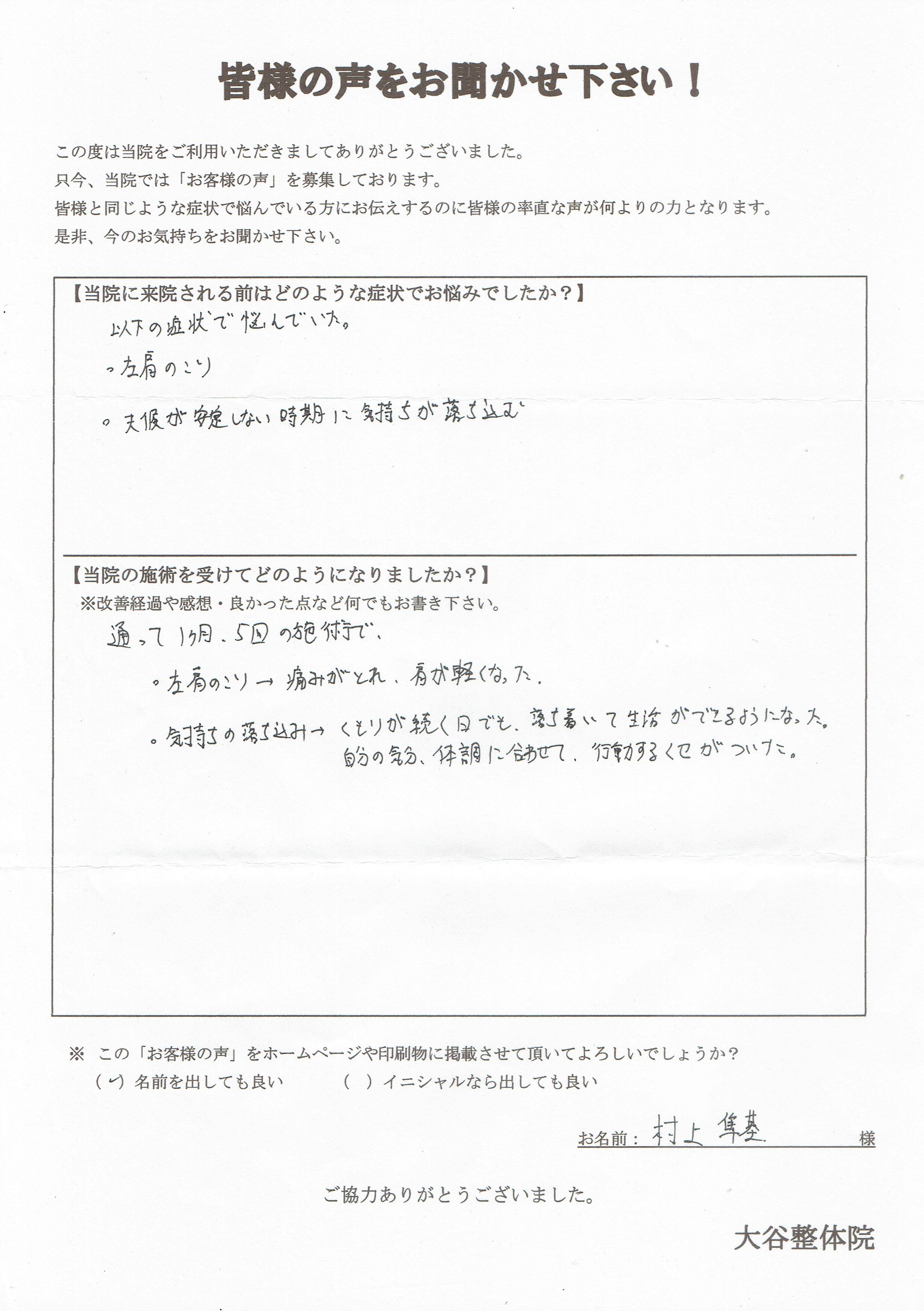 ずっと悩んでいた肩こりが楽になってすごく良かった。